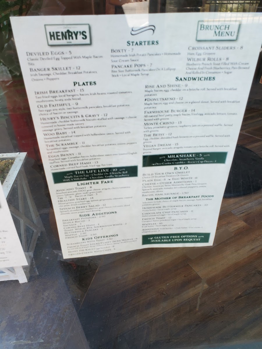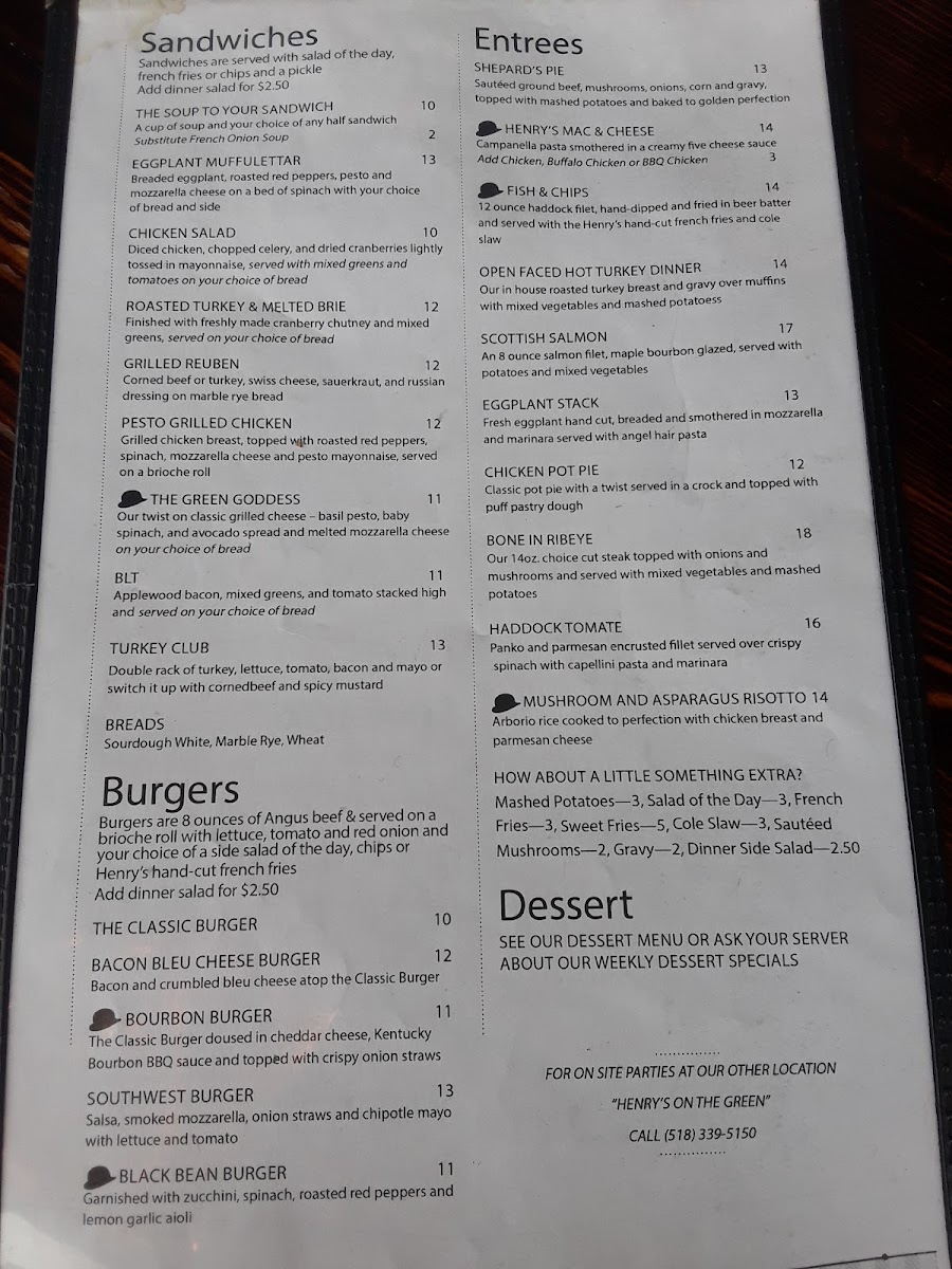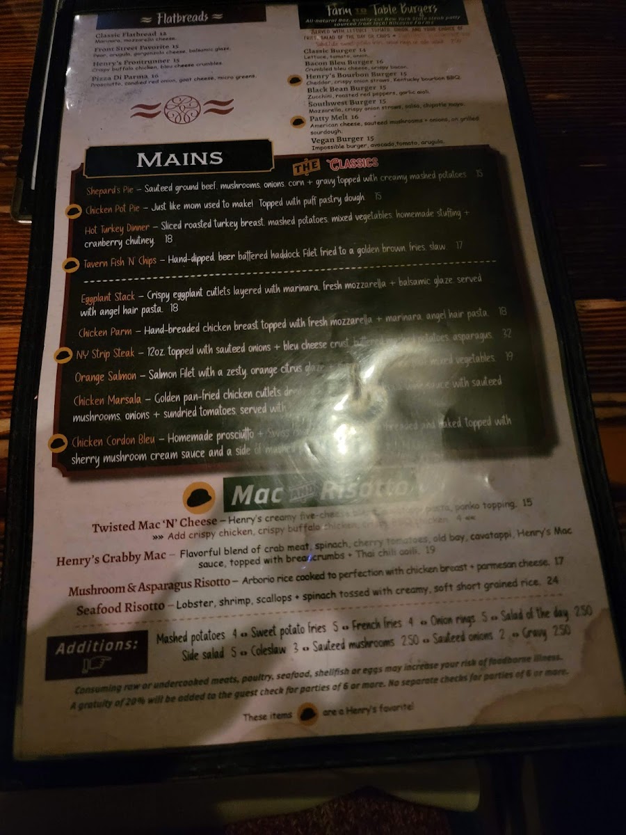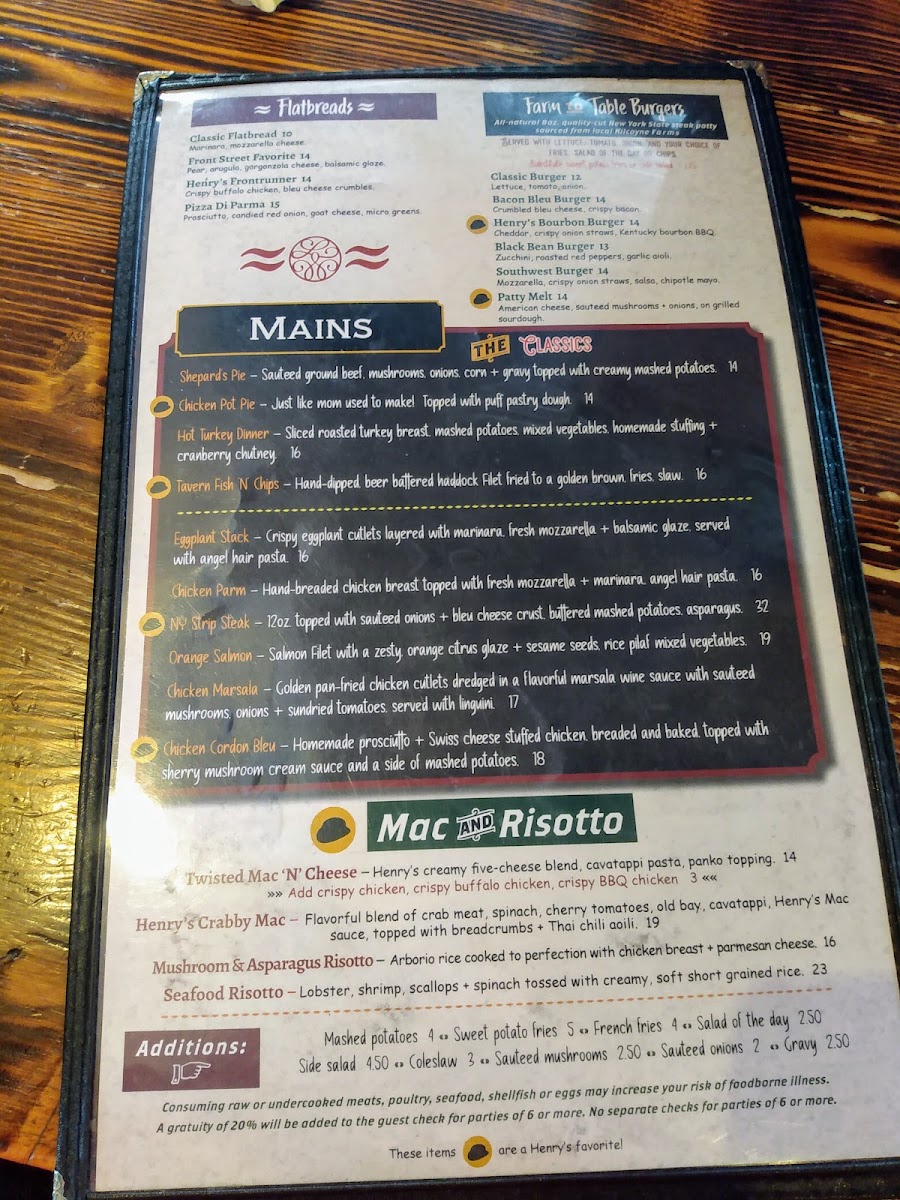 Henry's Tavern Menu